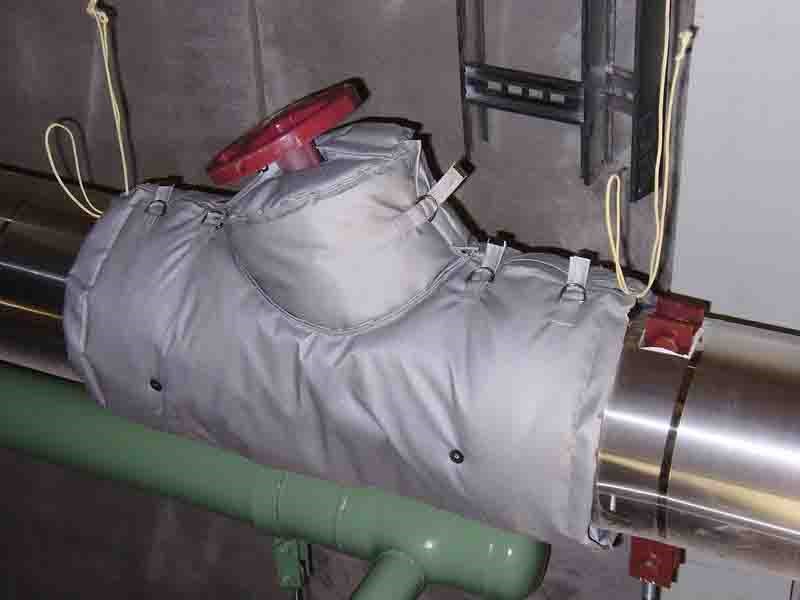 它采用耐高低溫性能優良防火保溫材料;由內層、隔熱層、防護層三層組成,根據設備的具體形狀設計縫制而成的